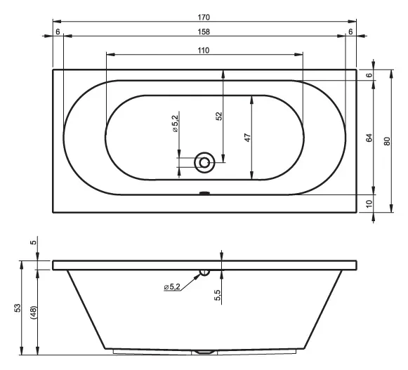 Riho vana CAROLINA bílá 1700 x 800 mm typ BB53 bez noh B055001005 / BB5300500000000