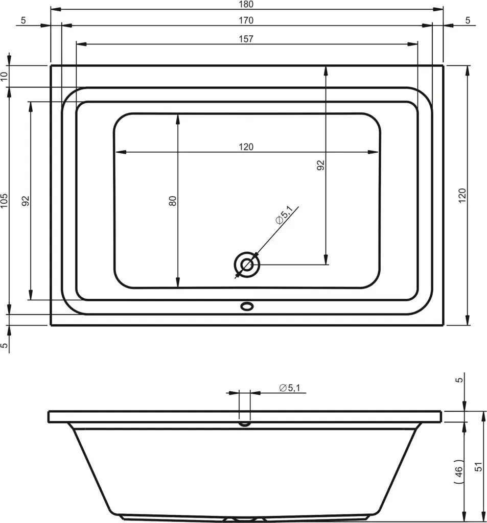 Riho vana CASTELLO bílá 1800 x 1200 mm typ BB77 bez noh