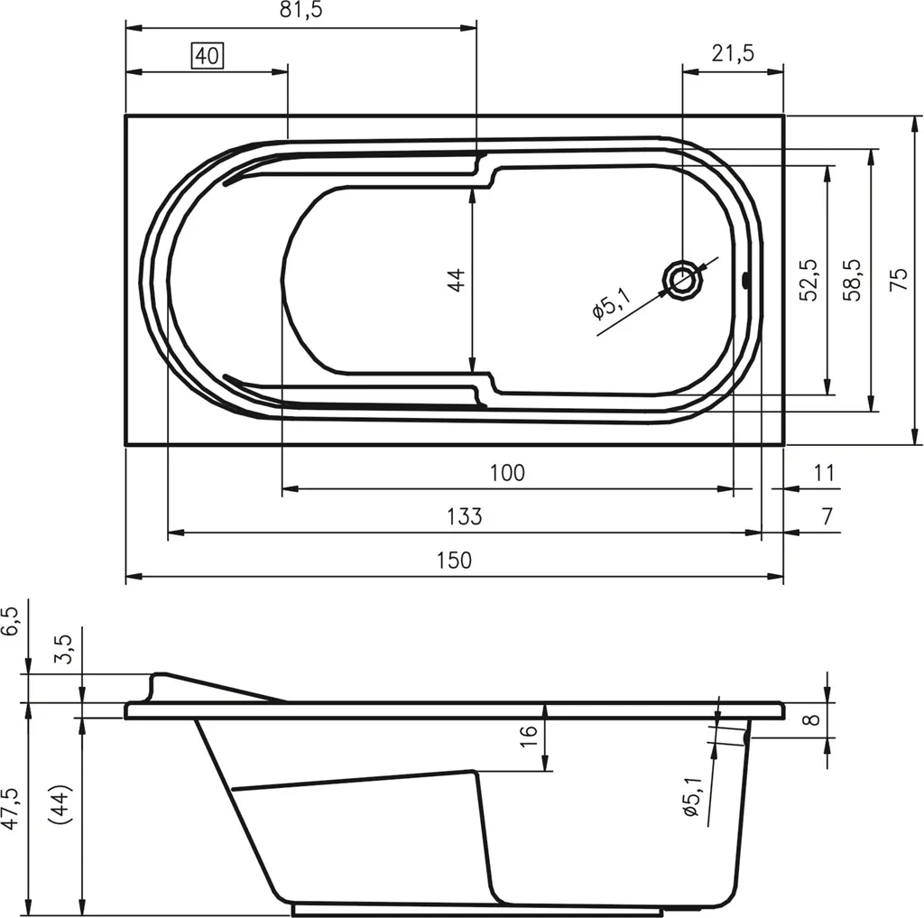 Riho vana COLUMBIA bílá 1500 x 750 mm typ BA02 bez noh