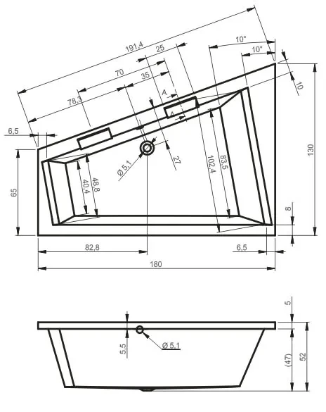 Riho vana DOPPIO Pravá bílá 1800 x 1300 mm typ BA90 bez noh (celý popis)