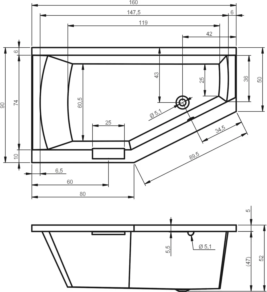 Riho vana GETA Levá bílá 1600 x 900 mm typ BA87 bez noh