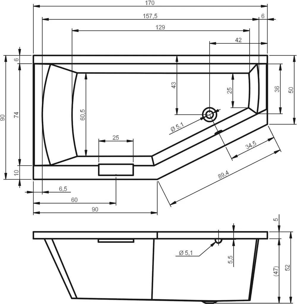 Riho vana GETA Pravá bílá 1700 x 900 mm typ BA88 bez noh