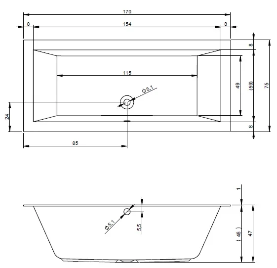 Riho vana LUGO bílá 1700 x 750 mm typ BT01 bez noh B132001005 (B132001005)