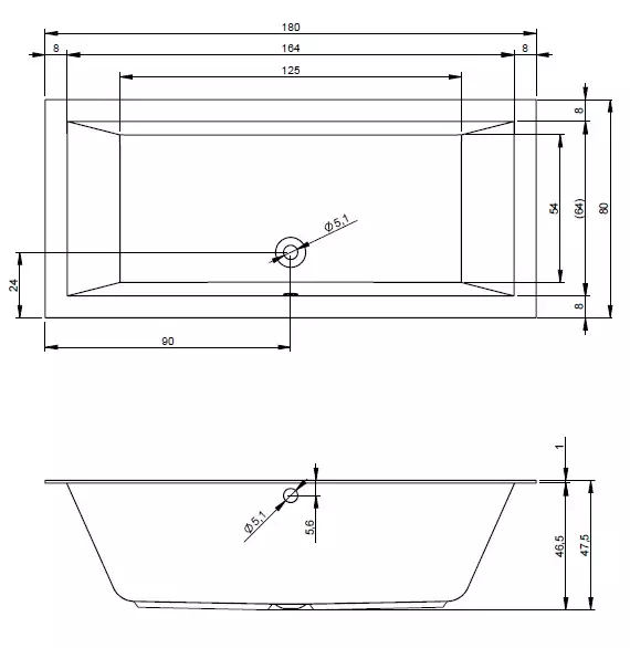 Riho vana LUGO bílá 1800 x 800 mm typ BT02 bez noh B133001005