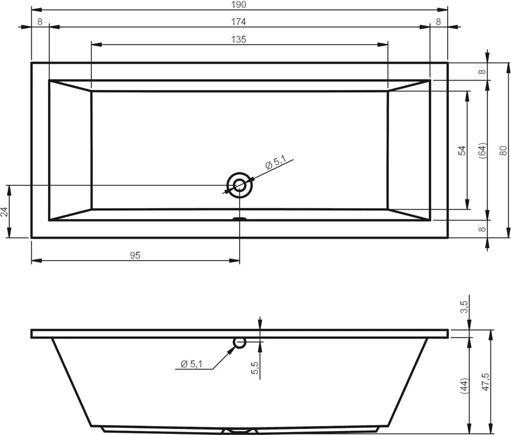 Riho vana LUSSO bílá 1900 x 800 mm typ BA59 bez noh