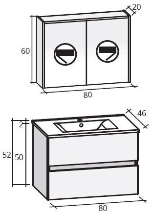 uvnitř zrcadlové skříňky 1 police, 1 elektrická zásuvka