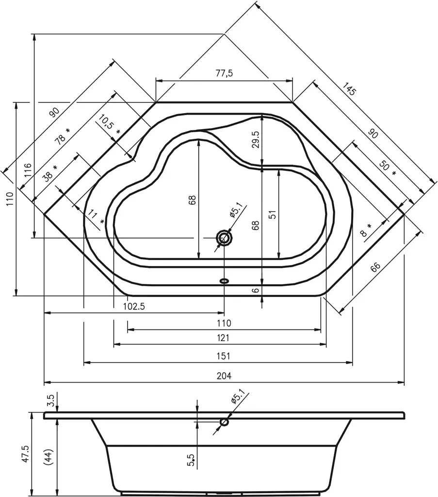 Riho vana WINNIPEG bílá 1450 x 1450 mm typ BA48 bez noh