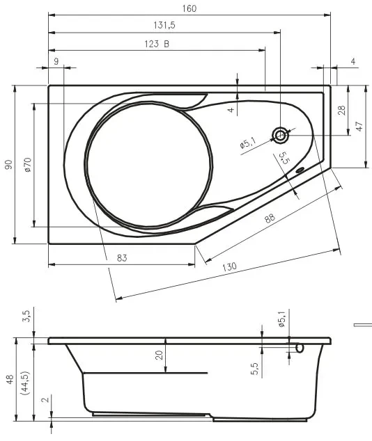 Riho vana YUKON Pravá bílá 1600 x 900 mm typ BA34 bez noh