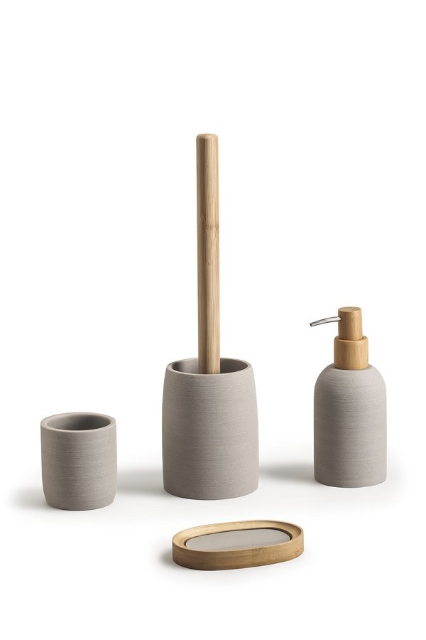 Decentní zdobení jemným proužkem a tlumená béžová barva ve spojení s bambusem činí z doplňků RIKO jedinečnou kolekci vhodnou do koupelen v přírodním nebo minimalistickém stylu.