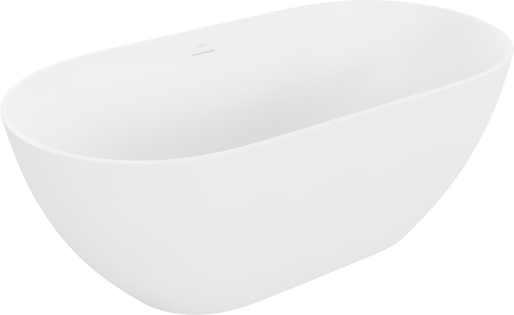 Volně stojící oválná vana série RIMINI od výrobce MEXEN je vyrobena z kolglomerátu /litý mramor/, je s přepadem a odpad má umístěný na středu vany.