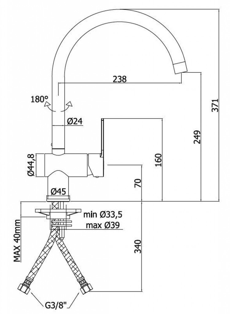 - otočné raménko 180 °
