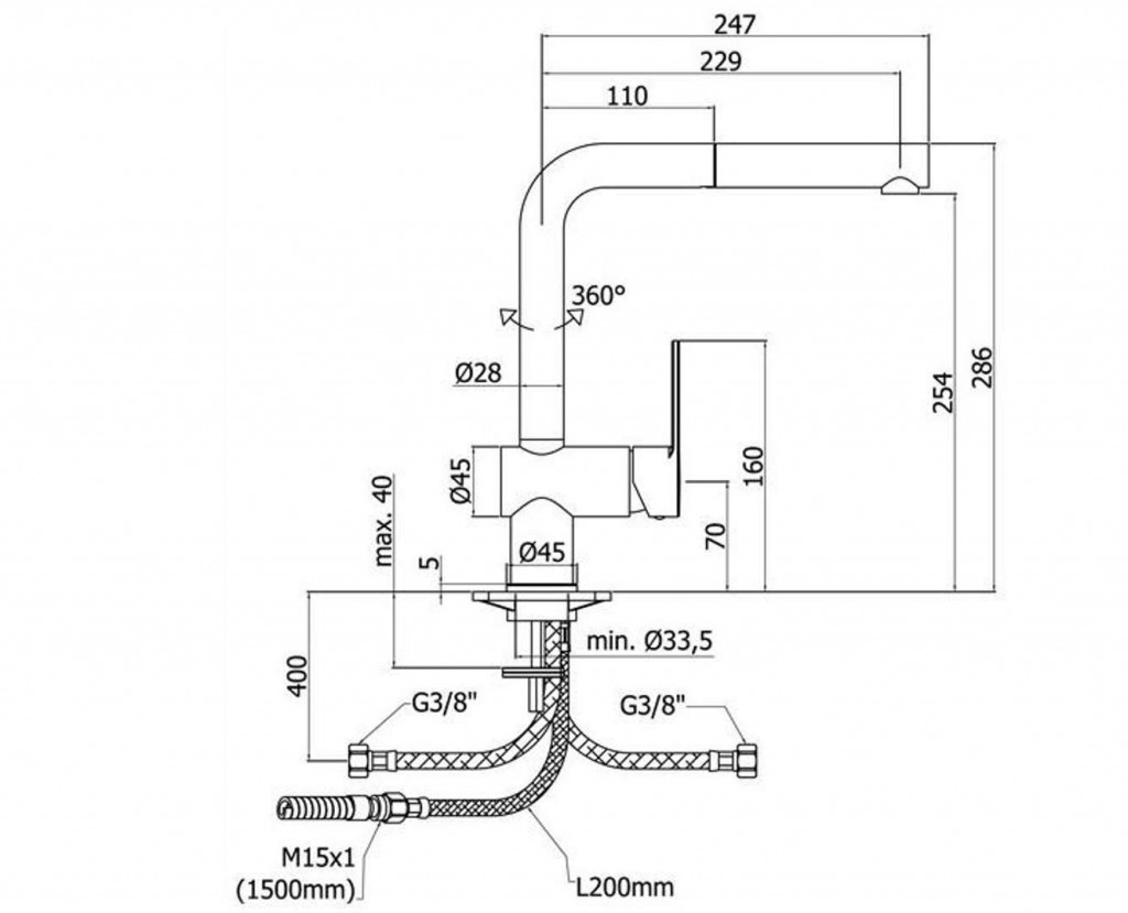- set 2 nerezových hadiček G 3/8" pro připojení k roháčkům v délce 45 cm