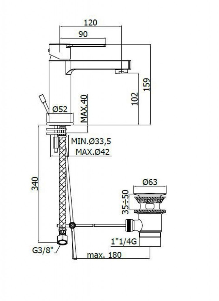 - délka výtoku 120 mm, komfortní zóna 102 mm