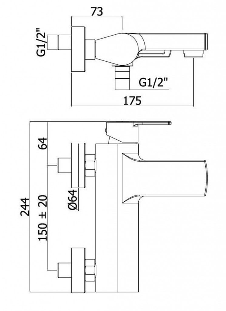 Vanová nástěnná páková baterie bez sprchového příslušenství
