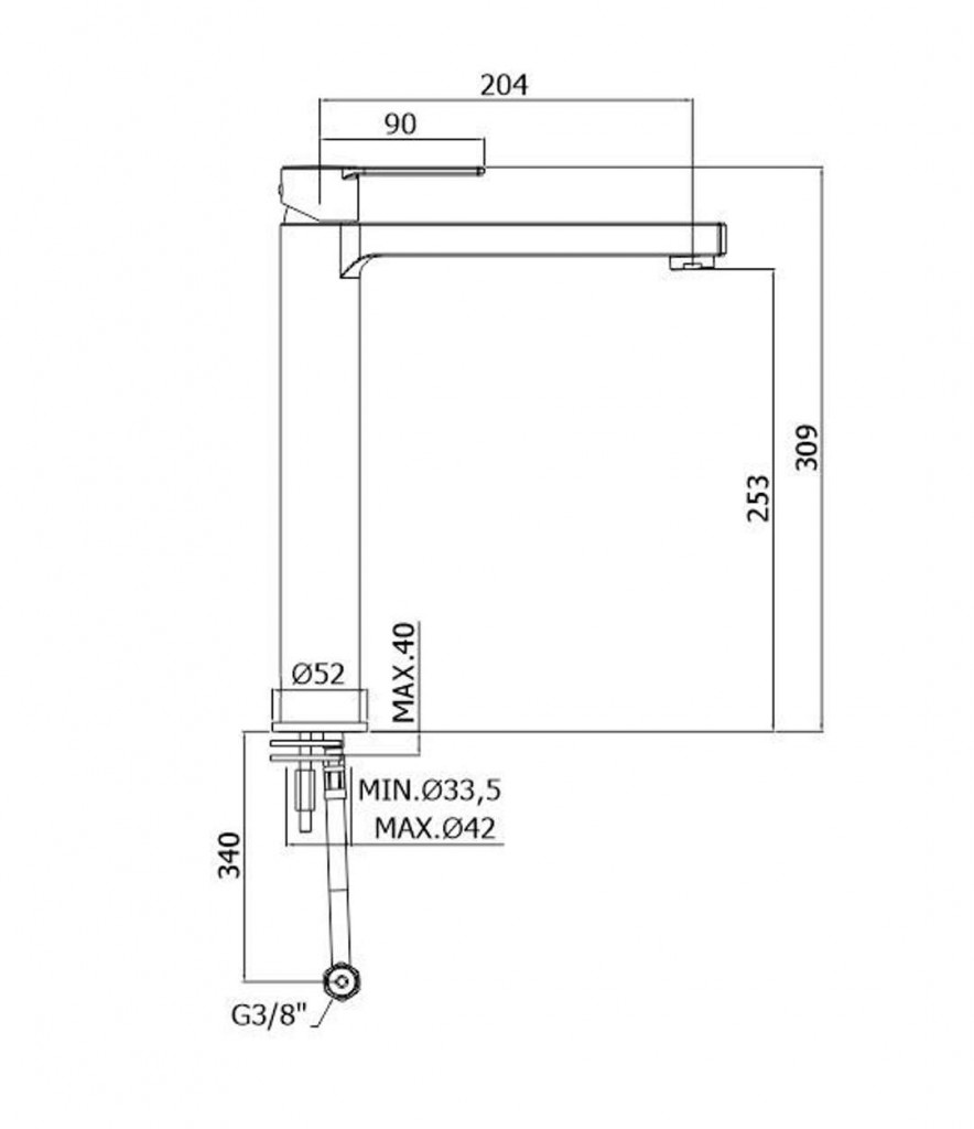 Vysoká stojánková baterie pro umyvadlovou mísu