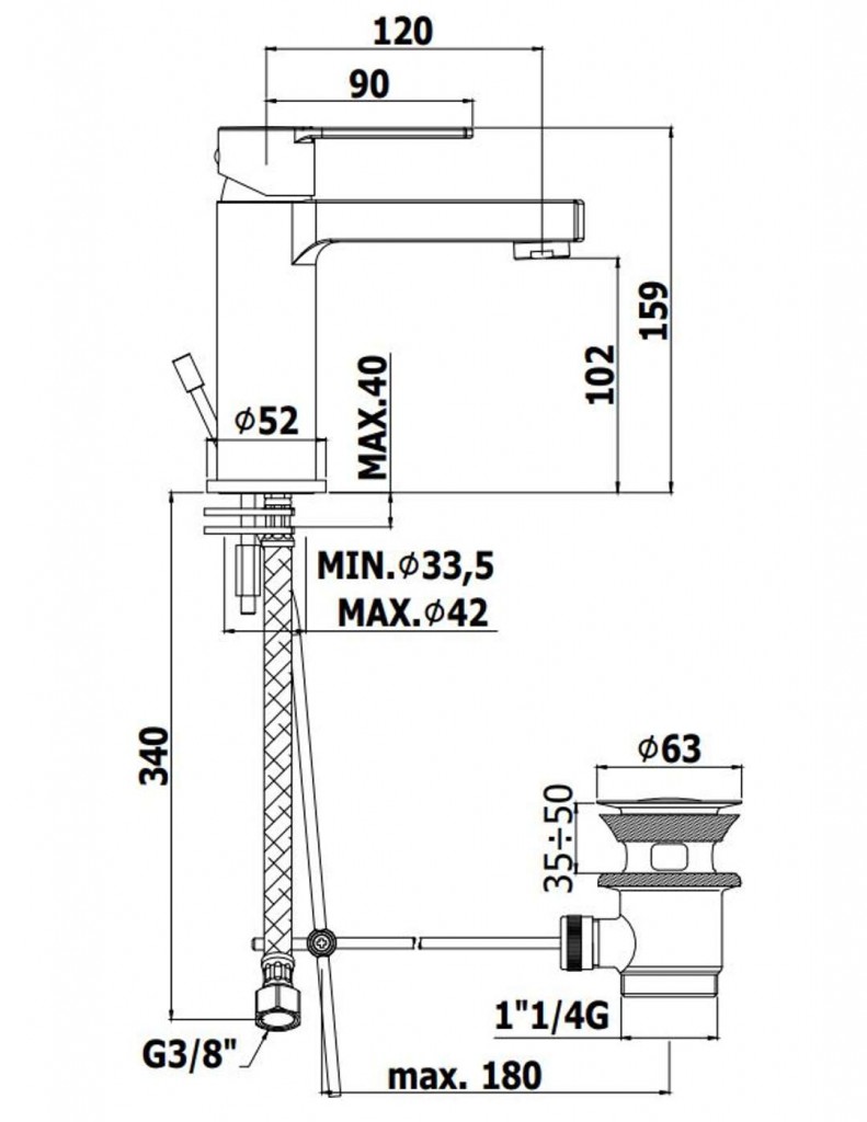 Vysoká stojánková baterie pro umyvadlovou mísu