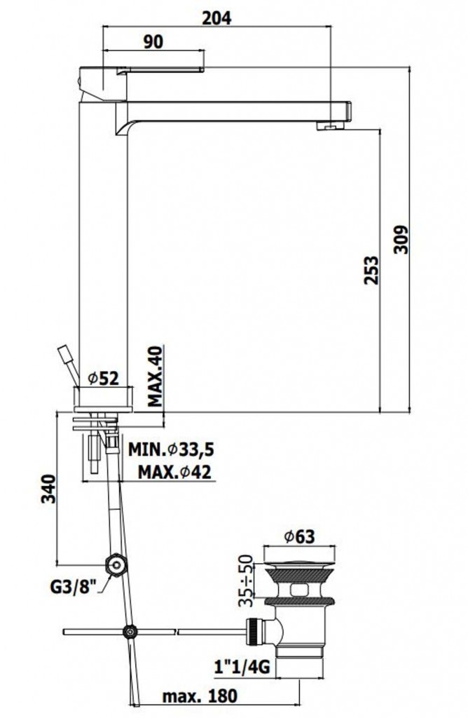 Vysoká stojánková baterie pro umyvadlovou mísu