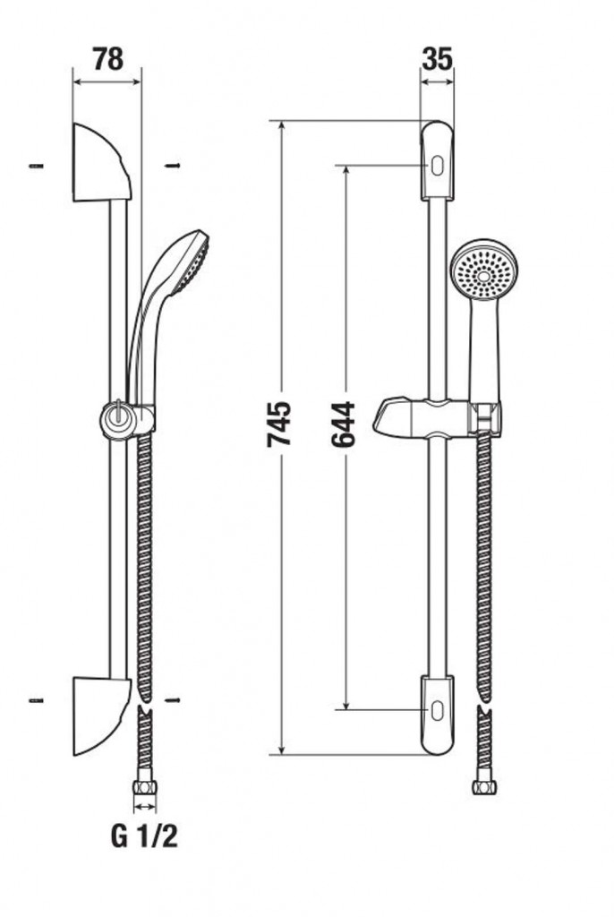 - sprchovou tyč 600 mm s držákem, chrom
