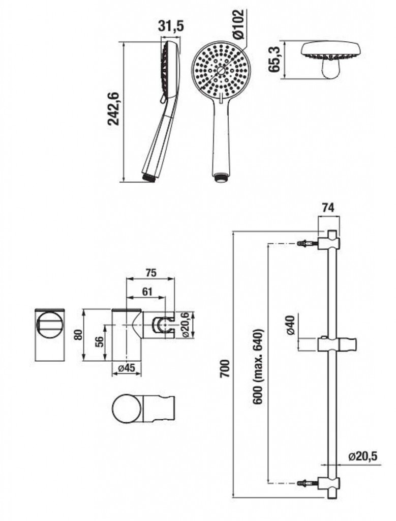 Sprchová souprava obsahuje