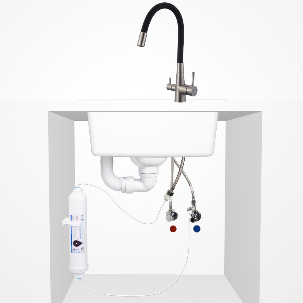 Řada baterií Riveco je moderní řešení, které kombinuje eleganci s funkčností a dokonale doplňuje širokou škálu dřezů – žulových i ocelových. Tyto baterie nabízejí snadné použití díky flexibilnímu výtoku, který poskytuje plný rozsah pohybu, což usnadňuje každodenní kuchyňské práce, zejména u větších dřezů. K dispozici jsou dva modely: baterie s možností připojení k vodnímu filtru a baterie s filtračním systémem Amii. První model nabízí pohodlí filtrování vody přímo z kohoutku, čímž eliminuje nutnost kupovat balenou vodu, což je ekonomické i ekologické. Druhý model, vybavený filtračním systémem Amii, účinně zlepšuje kvalitu vody odstraňováním chlóru, těžkých kovů a dalších kontaminantů, čímž zajišťuje čistou a chutnou pitnou vodu bez dalších filtračních zařízení. Baterie Riveco jsou k dispozici v módních povrchových úpravách: kartáčovaná ocel, černá, grafitová a kartáčovaná zlatá, díky čemuž se perfektně hodí k různým stylům dřezů. Tyto elegantní povrchové úpravy dodávají každé kuchyni moderní nádech a zároveň zajišťují odolnost a snadnou údržbu. Řada Riveco je kombinací inovativní technologie, estetiky a pohodlí každodenního používání, díky čemuž je vaření a každodenní kuchyňské práce pohodlnější a ekologičtější.