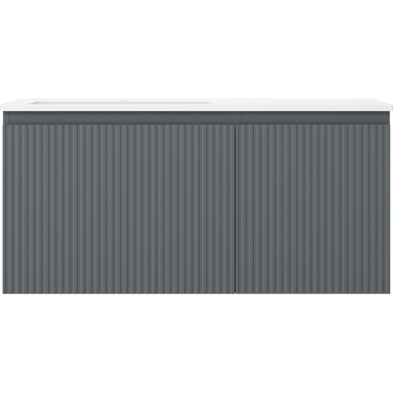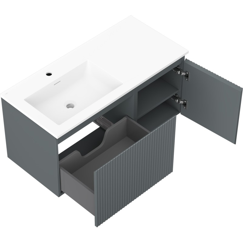 Specifikace produktu: Rozměry skříňky: Šířka: 100 cm Hloubka: 46 cm Výška: 47 cm Sada obsahuje: Zásuvková skříňka pod umyvadlo: Šířka: 60 cm Hloubka: 46 cm Výška: 47 cm Barva korpusu: Matný grafit Materiál korpusu: Lakovaná deska Barva čela: Matný grafit Materiál čela: Lakovaná MDF deska Konstrukce čela: Drážkovaná Počet zásuvek: 1 Prostorná zásuvka s funkcí tlumení dovírání Povrch odolný vůči UV záření Skříňka pod umyvadlo s dvířky: Šířka: 40 cm Výška: 47 cm Hloubka: 46 cm Barva korpusu: Matný grafit Materiál korpusu: Lakovaná deska Barva čela: Matný grafit Materiál čela: Lakovaná MDF deska Konstrukce čela: Drážkovaná Počet dvířek: 1 1 police Panty s funkcí tlumení dovírání Univerzální montáž dvířek (levé/pravé) Povrch odolný vůči UV záření Umyvadlo: Šířka: 101 cm Hloubka: 46,5 cm Výška: 16,5 cm Barva umyvadla: Matná bílá Materiál umyvadla: Konglomerát Otvor pro přepad: Ano Otvor pro baterii: Ano Smontovaný výrobek
