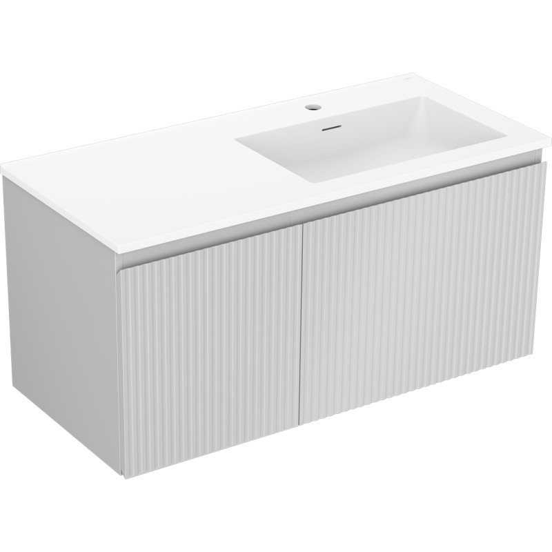 Specifikace produktu: Rozměry skříňky: Šířka: 100 cm Hloubka: 46 cm Výška: 47 cm Sada obsahuje: Zásuvková skříňka pod umyvadlo: Šířka: 60 cm Hloubka: 46 cm Výška: 47 cm Barva korpusu: Matně šedá Materiál korpusu: Lakovaná deska Barva čela: Matně šedá Materiál čela: Lakovaná MDF deska Konstrukce čela: Drážkovaná Počet zásuvek: 1 Prostorná zásuvka s funkcí tlumení dovírání Povrch odolný proti UV záření Skříňka pod umyvadlo s dvířky: Šířka: 40 cm Výška: 47 cm Hloubka: 46 cm Barva korpusu: Matně šedá Materiál korpusu: Lakovaná deska Barva čela: Matně šedá Materiál čela: Lakovaná MDF deska Konstrukce čela: Drážkovaná Počet dvířek: 1 1 police Panty s funkcí tlumení dovírání Univerzální montáž dvířek (levé/pravé) Povrch odolný proti UV záření Umyvadlo: Šířka: 101 cm Hloubka: 46,5 cm Výška: 16,5 cm Barva umyvadla: Matně bílá Materiál umyvadla: Konglomerát Otvor pro přepad: Ano Otvor pro baterii: Ano Smontovaný výrobek