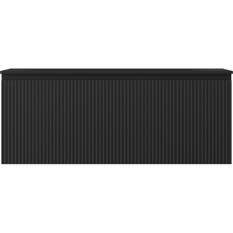 Specifikace produktu: Rozměry skříňky: Šířka: 120 cm Hloubka: 46 cm Výška: 47 cm Barva korpusu: Matná černá Materiál korpusu: Lakovaná deska Barva čela: Matná černá Materiál čela: Lakovaná MDF deska Struktura čela: Drážkovaná Počet zásuvek: 1 Prostorná zásuvka s funkcí tichého dovírání Povrch odolný vůči UV záření Rozměry umyvadla: Šířka: 121 cm Hloubka: 46,5 cm Výška: 16,5 cm Barva umyvadla: Matná černá Materiál umyvadla: Konglomerát Otvor pro přepad: Ano Otvor pro baterii: Ano Smontovaný výrobek