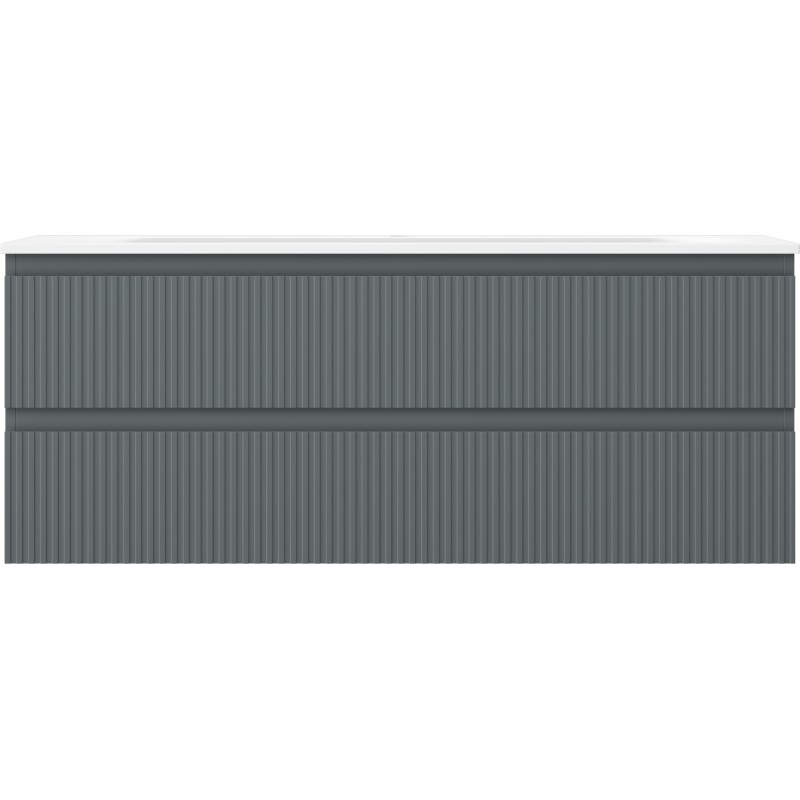 Specifikace produktu: Rozměry skříňky: Šířka: 120 cm Hloubka: 46 cm Výška: 47 cm Barva korpusu: Matný grafit Materiál korpusu: Lakovaná deska Barva čela: Matný grafit Materiál čela: Lakovaná MDF deska Struktura čela: Drážkovaná Počet zásuvek: 2 Prostorná zásuvka s funkcí tlumeného dovírání Povrch odolný vůči UV záření Rozměry umyvadla: Šířka: 121 cm Hloubka: 46,5 cm Výška: 16,5 cm Barva umyvadla: Matná bílá Materiál umyvadla: Konglomerát Otvor pro přepad: Ano Otvor pro baterii: Ano Smontovaný výrobek