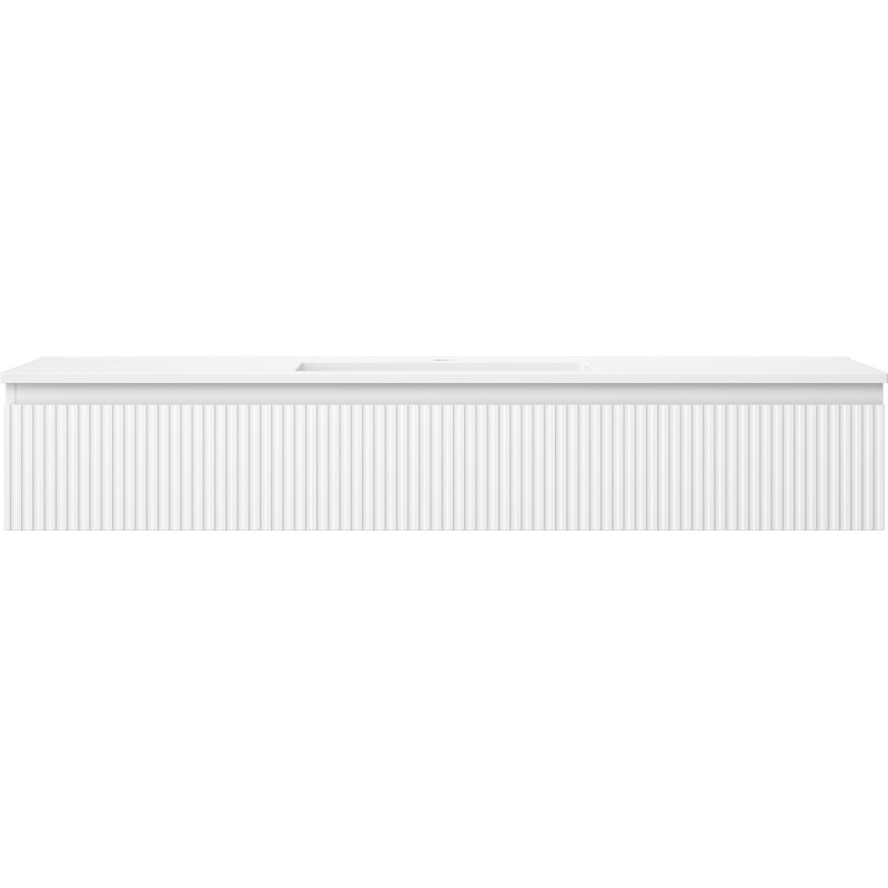 Specifikace produktu: Rozměry skříňky: Šířka: 140 cm Hloubka: 46 cm Výška: 23,5 cm Barva korpusu: Matná bílá Materiál korpusu: Lakovaná deska Barva čela: Matná bílá Materiál čela: Lakovaná MDF deska Struktura čela: Drážkovaná Počet zásuvek: 1 Prostorná zásuvka s funkcí tlumeného dovírání Povrch odolný vůči UV záření Rozměry umyvadla: Šířka: 141 cm Hloubka: 46,5 cm Výška: 16,5 cm Barva umyvadla: Matná bílá Materiál umyvadla: Konglomerát Otvor pro přepad: Ano Otvor pro baterii: Ano Smontovaný výrobek