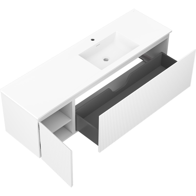 Specifikace produktu: Rozměry skříňky: Šířka: 160 cm Hloubka: 46 cm Výška: 47 cm Sada obsahuje: Zásuvková skříňka pod umyvadlo: Šířka: 120 cm Hloubka: 46 cm Výška: 47 cm Barva korpusu: Matná bílá Materiál korpusu: Lakovaná deska Barva čela: Matná bílá Materiál čela: Lakovaná MDF deska Konstrukce čela: Drážkovaná Počet zásuvek: 1 Prostorná zásuvka s funkcí tlumení dovírání Umyvadlová skříňka s dvířky: Šířka: 40 cm Výška: 47 cm Hloubka: 46 cm Barva korpusu: Matná bílá Materiál korpusu: Lakovaná deska Barva čela: Matná bílá Materiál čela: Lakovaná MDF deska Konstrukce čela: Drážkovaná Počet dvířek: 1 1 police Panty s funkcí tlumení dovírání Univerzální montáž dvířek (levé/pravé) Povrch odolný vůči UV záření Umyvadlo: Šířka: 161 cm Hloubka: 46,5 cm Výška: 16,5 cm Barva umyvadla: Matná bílá Materiál umyvadla: Konglomerát Otvor pro přepad: Ano Otvor pro baterii: Ano Výrobek smontovaný