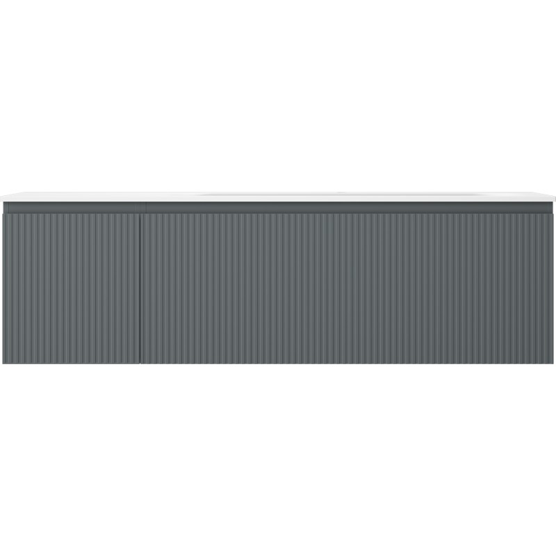 Specifikace produktu: Rozměry skříňky: Šířka: 160 cm Hloubka: 46 cm Výška: 47 cm Sada obsahuje: Zásuvková skříňka pod umyvadlo: Šířka: 120 cm Hloubka: 46 cm Výška: 47 cm Barva korpusu: Matný grafit Materiál korpusu: Lakovaná deska Barva čela: Matný grafit Materiál čela: Lakovaná MDF deska Konstrukce čela: Drážkovaná Počet zásuvek: 1 Prostorná zásuvka s funkcí tlumení dovírání Povrch odolný vůči UV záření Skříňka pod umyvadlo s dvířky: Šířka: 40 cm Výška: 47 cm Hloubka: 46 cm Barva korpusu: Matný grafit Materiál korpusu: Lakovaná deska Barva čela: Matný grafit Materiál čela: Lakovaná MDF deska Konstrukce čela: Drážkovaná Počet dvířek: 1 1 police Panty s funkcí tlumení dovírání Univerzální montáž dvířek (levé/pravé) Povrch odolný vůči UV záření Umyvadlo: Šířka: 161 cm Hloubka: 46,5 cm Výška: 16,5 cm Barva umyvadla: Matná bílá Materiál umyvadla: Konglomerát Otvor pro přepad: Ano Otvor pro baterii: Ano Smontovaný výrobek