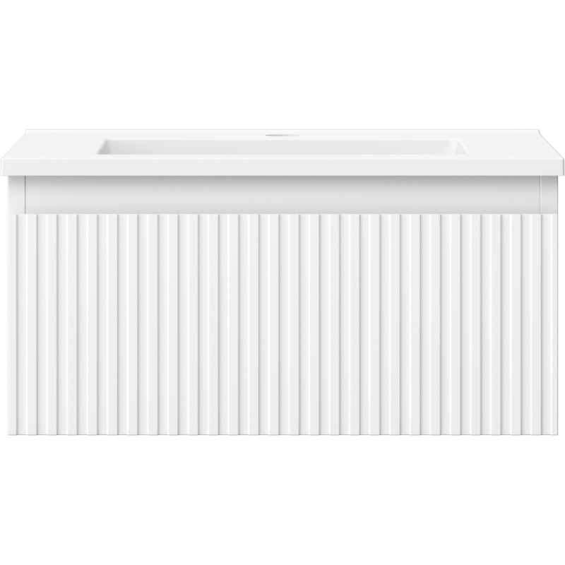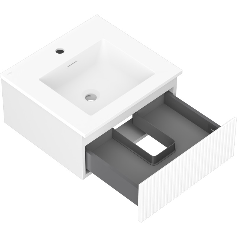 Specifikace produktu: Rozměry skříňky: Šířka: 50 cm Hloubka: 46 cm Výška: 23,5 cm Barva korpusu: Matná bílá Materiál korpusu: Lakovaná deska Barva čela: Matná bílá Materiál čela: Lakovaná MDF deska Struktura čela: Drážkovaná Počet zásuvek: 1 Prostorná zásuvka s funkcí tlumeného dovírání Povrch odolný vůči UV záření Rozměry umyvadla: Šířka: 51 cm Hloubka: 46,5 cm Výška: 16,5 cm Barva umyvadla: Matná bílá Materiál umyvadla: Konglomerát Otvor pro přepad: Ano Otvor pro baterii: Ano Smontovaný výrobek
