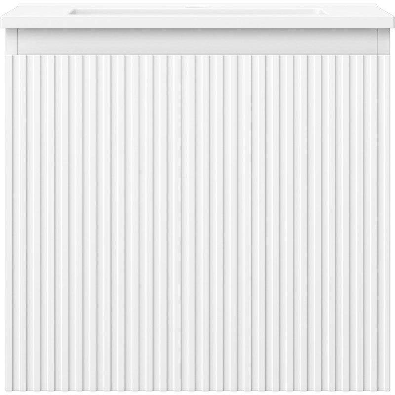 Specifikace produktu: Rozměry skříňky: Šířka: 50 cm Hloubka: 46 cm Výška: 47 cm Barva korpusu: Matná bílá Materiál korpusu: Lakovaná deska Barva čela: Matná bílá Materiál čela: Lakovaná MDF deska Struktura čela: Drážkovaná Počet zásuvek: 1 Prostorná zásuvka s funkcí tichého dovírání Povrch odolný vůči UV záření Rozměry umyvadla: Šířka: 51 cm Hloubka: 46,5 cm Výška: 16,5 cm Barva umyvadla: Matná bílá Materiál umyvadla: Konglomerát Otvor pro přepad: Ano Otvor pro baterii: Ano Smontovaný výrobek