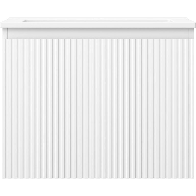 Specifikace produktu: Rozměry skříňky: Šířka: 60 cm Hloubka: 46 cm Výška: 47 cm Barva korpusu: Matná bílá Materiál korpusu: Lakovaná deska Barva čela: Matná bílá Materiál čela: Lakovaná MDF deska Struktura čela: Drážkovaná Počet zásuvek: 1 Prostorná zásuvka s funkcí tlumeného dovírání Povrch odolný vůči UV záření Rozměry umyvadla: Šířka: 61 cm Hloubka: 46,5 cm Výška: 16,5 cm Barva umyvadla: Matná bílá Materiál umyvadla: Konglomerát Otvor pro přepad: Ano Otvor pro baterii: Ano Smontovaný výrobek