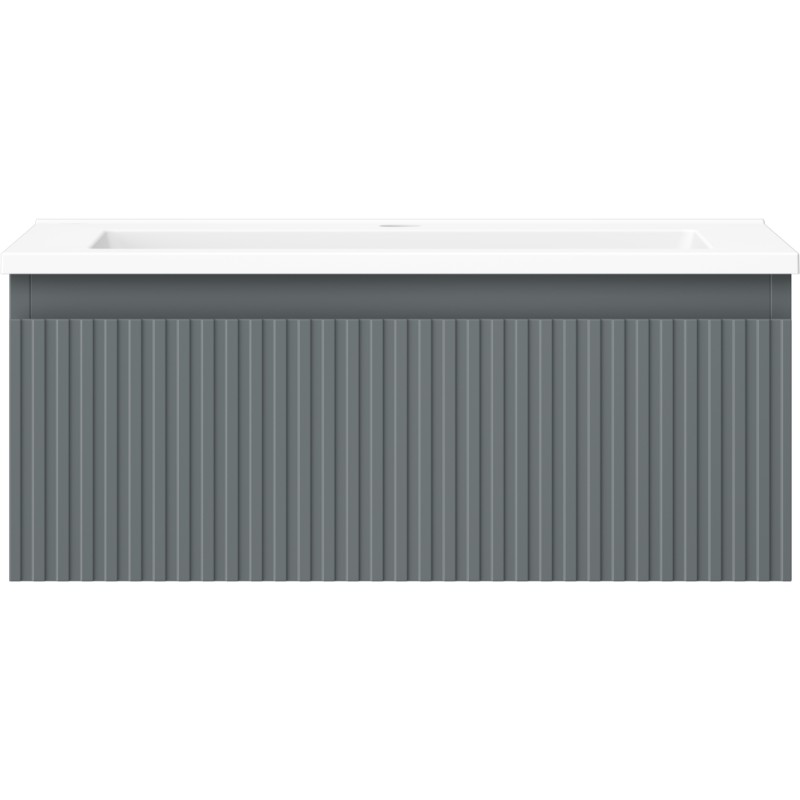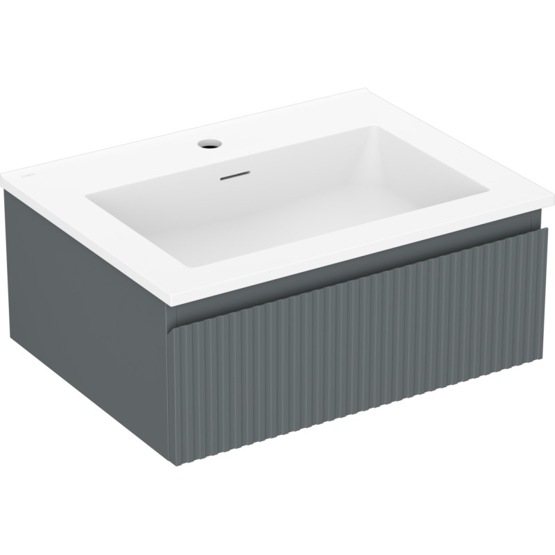 Specifikace produktu: Rozměry skříňky: Šířka: 60 cm Hloubka: 46 cm Výška: 23,5 cm Barva korpusu: Matný grafit Materiál korpusu: Lakovaná deska Barva čela: Matný grafit Materiál čela: Lakovaná MDF deska Struktura čela: Drážkovaná Počet zásuvek: 1 Prostorná zásuvka s funkcí tlumeného dovírání Povrch odolný vůči UV záření Rozměry umyvadla: Šířka: 61 cm Hloubka: 46,5 cm Výška: 16,5 cm Barva umyvadla: Matná bílá Materiál umyvadla: Konglomerát Otvor pro přepad: Ano Otvor pro baterii: Ano Smontovaný výrobek