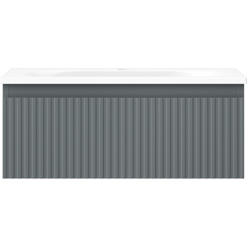 Specifikace produktu: Rozměry skříňky: Šířka: 60 cm Hloubka: 46 cm Výška: 23,5 cm Barva korpusu: Matný grafit Materiál korpusu: Lakovaná deska Barva čela: Matný grafit Materiál čela: Lakovaná MDF deska Struktura čela: Drážkovaná Počet zásuvek: 1 Prostorná zásuvka s funkcí tlumeného dovírání Povrch odolný vůči UV záření Rozměry umyvadla: Šířka: 61 cm Hloubka: 46,5 cm Výška: 16,5 cm Barva umyvadla: Matná bílá Materiál umyvadla: Konglomerát Otvor pro přepad: Ano Otvor pro baterii: Ano Smontovaný výrobek