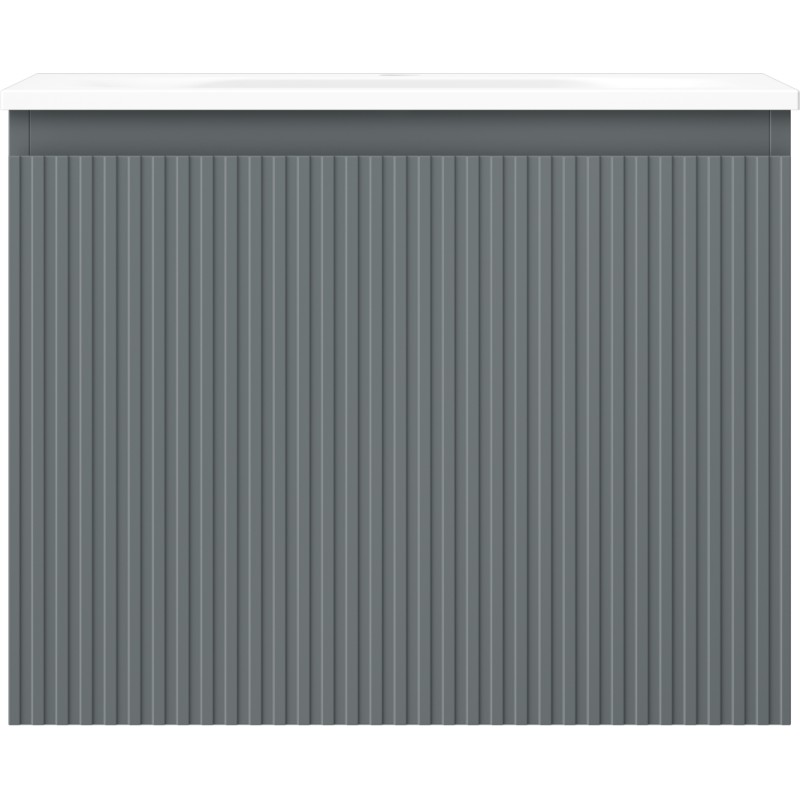 Specifikace produktu: Rozměry skříňky: Šířka: 60 cm Hloubka: 46 cm Výška: 47 cm Barva korpusu: Matný grafit Materiál korpusu: Lakovaná deska Barva čela: Matný grafit Materiál čela: Lakovaná MDF deska Struktura čela: Drážkovaná Počet zásuvek: 1 Prostorná zásuvka s funkcí tlumeného dovírání Povrch odolný vůči UV záření Rozměry umyvadla: Šířka: 61 cm Hloubka: 46,5 cm Výška: 16,5 cm Barva umyvadla: Matná bílá Materiál umyvadla: Konglomerát Otvor pro přepad: Ano Otvor pro baterii: Ano Smontovaný výrobek