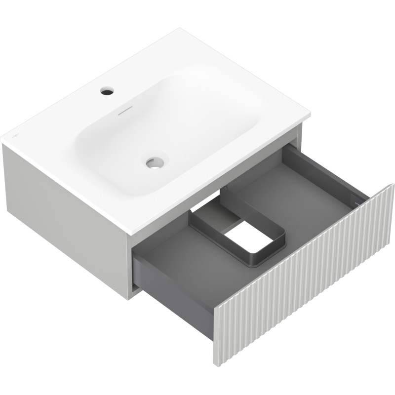 Specifikace produktu: Rozměry skříňky: Šířka: 60 cm Hloubka: 46 cm Výška: 23,5 cm Barva korpusu: Matně šedá Materiál korpusu: Lakovaná deska Barva čela: Matně šedá Materiál čela: Lakovaná MDF deska Struktura čela: Drážkovaná Počet zásuvek: 1 Prostorná zásuvka s funkcí tichého dovírání Povrch odolný vůči UV záření Rozměry umyvadla: Šířka: 61 cm Hloubka: 46,5 cm Výška: 16,5 cm Barva umyvadla: Matně bílá Materiál umyvadla: Konglomerát Otvor pro přepad: Ano Otvor pro baterii: Ano Smontovaný výrobek