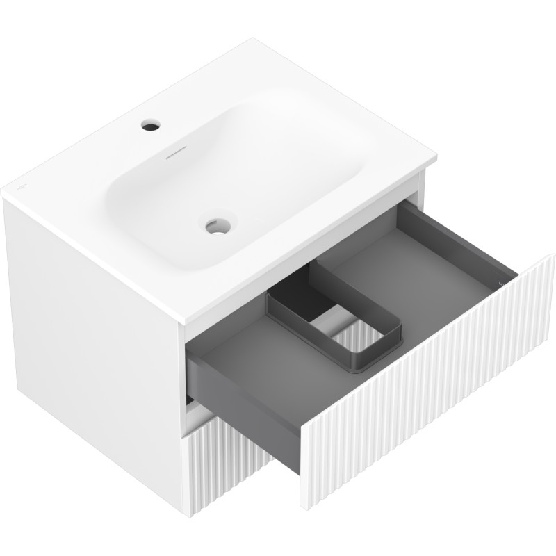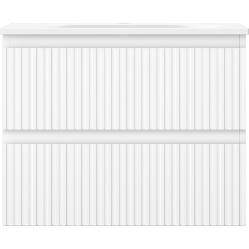 Specifikace produktu: Rozměry skříňky: Šířka: 60 cm Hloubka: 46 cm Výška: 47 cm Barva korpusu: Matná bílá Materiál korpusu: Lakovaná deska Barva čela: Matná bílá Materiál čela: Lakovaná MDF deska Struktura čela: Drážkovaná Počet zásuvek: 2 Prostorná zásuvka s funkcí tlumeného dovírání Povrch odolný vůči UV záření Rozměry umyvadla: Šířka: 61 cm Hloubka: 46,5 cm Výška: 16,5 cm Barva umyvadla: Matná bílá Materiál umyvadla: Konglomerát Otvor pro přepad: Ano Otvor pro baterii: Ano Smontovaný výrobek