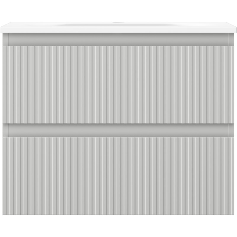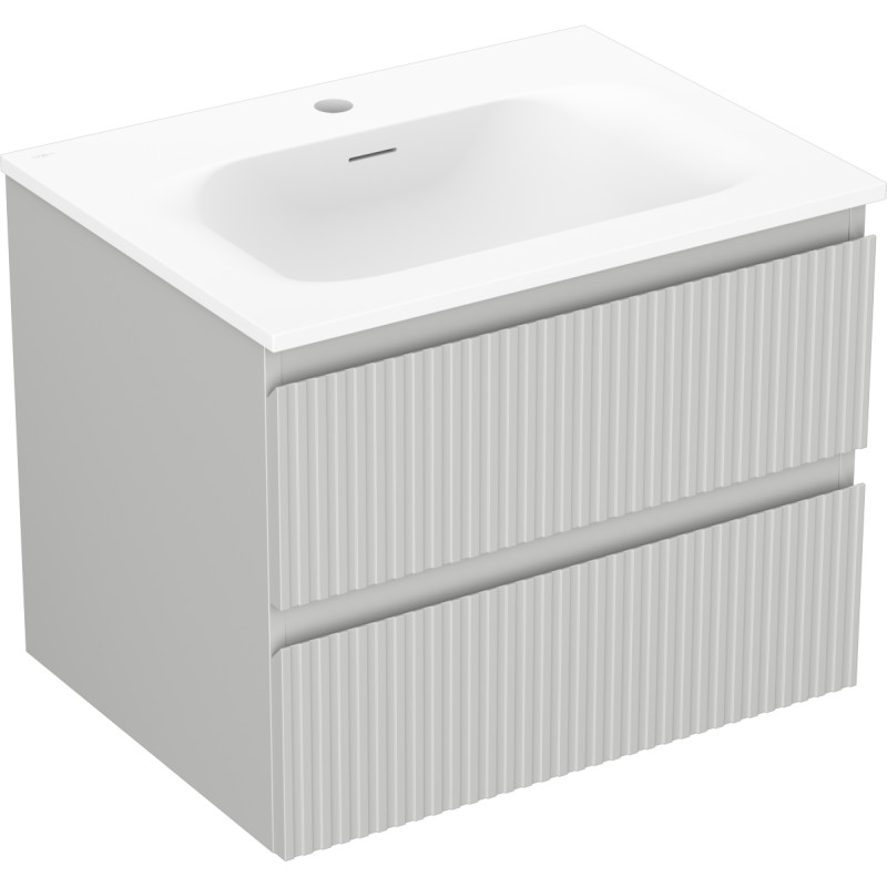 Specifikace produktu: Rozměry skříňky: Šířka: 60 cm Hloubka: 46 cm Výška: 47 cm Barva korpusu: Matně šedá Materiál korpusu: Lakovaná deska Barva čela: Matně šedá Materiál čela: Lakovaná MDF deska Struktura čela: Drážkovaná Počet zásuvek: 2 Prostorná zásuvka s funkcí tlumeného dovírání Povrch odolný vůči UV záření Rozměry umyvadla: Šířka: 61 cm Hloubka: 46,5 cm Výška: 16,5 cm Barva umyvadla: Matně bílá Materiál umyvadla: Konglomerát Otvor pro přepad: Ano Otvor pro baterii: Ano Smontovaný výrobek
