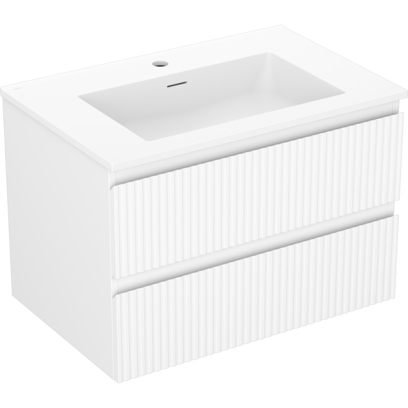 Specifikace produktu: Rozměry skříňky: Šířka: 70 cm Hloubka: 46 cm Výška: 47 cm Barva korpusu: Matná bílá Materiál korpusu: Lakovaná deska Barva čela: Matná bílá Materiál čela: Lakovaná MDF deska Struktura čela: Drážkovaná Počet zásuvek: 2 Prostorná zásuvka s funkcí tlumeného dovírání Povrch odolný vůči UV záření Rozměry umyvadla: Šířka: 71 cm Hloubka: 46,5 cm Výška: 16,8 cm Barva umyvadla: Matná bílá Materiál umyvadla: Konglomerát Otvor pro přepad: Ano Otvor pro baterii: Ano Smontovaný výrobek