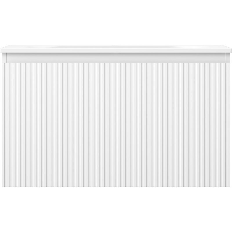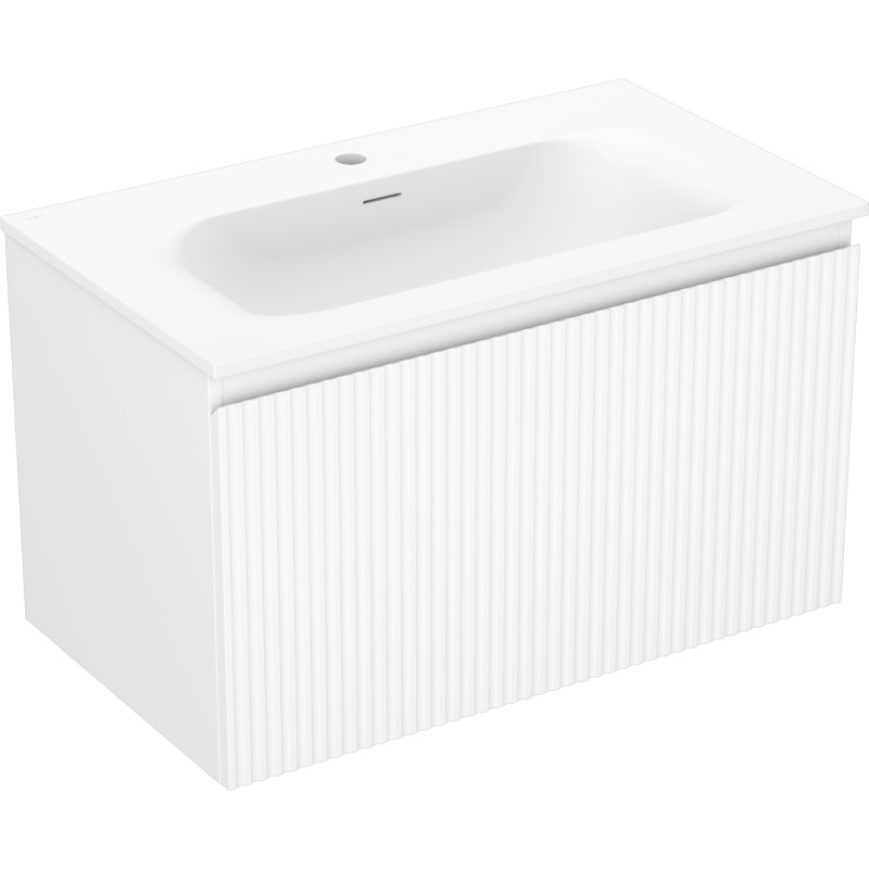Specifikace produktu: Rozměry skříňky: Šířka: 80 cm Hloubka: 46 cm Výška: 47 cm Barva korpusu: Matná bílá Materiál korpusu: Lakovaná deska Barva čela: Matná bílá Materiál čela: Lakovaná MDF deska Struktura čela: Drážkovaná Počet zásuvek: 1 Prostorná zásuvka s funkcí tlumeného dovírání Povrch odolný vůči UV záření Rozměry umyvadla: Šířka: 81 cm Hloubka: 46,5 cm Výška: 16,5 cm Barva umyvadla: Matná bílá Materiál umyvadla: Konglomerát Otvor pro přepad: Ano Otvor pro baterii: Ano Smontovaný výrobek