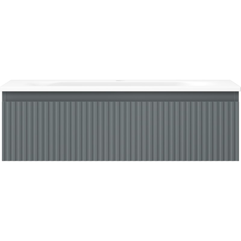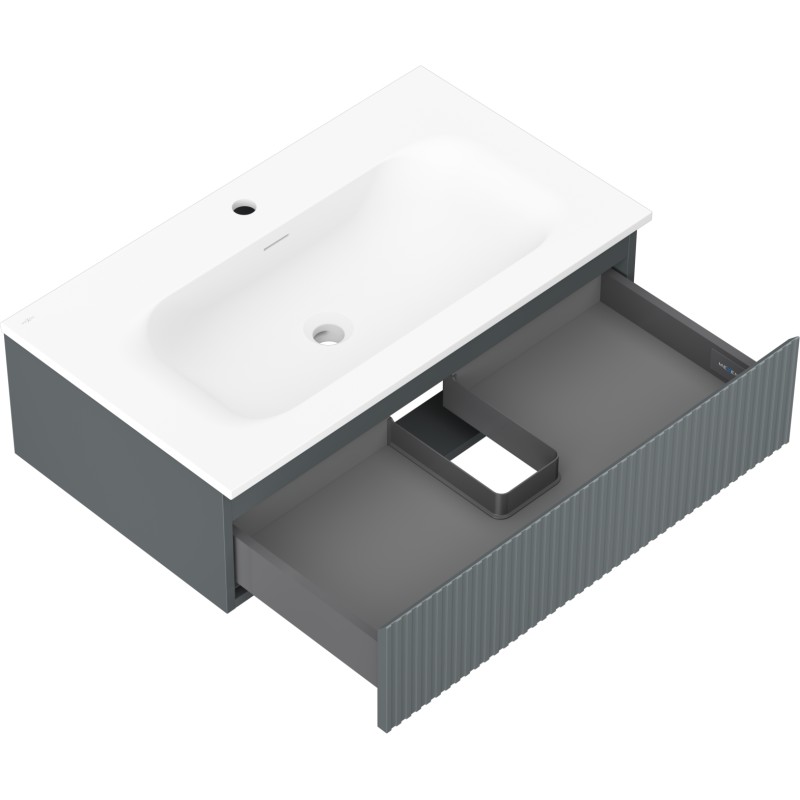 Specifikace produktu: Rozměry skříňky: Šířka: 80 cm Hloubka: 46 cm Výška: 23,5 cm Barva korpusu: Matný grafit Materiál korpusu: Lakovaná deska Barva čela: Matný grafit Materiál čela: Lakovaná MDF deska Struktura čela: Drážkovaná Počet zásuvek: 1 Prostorná zásuvka s funkcí tlumeného dovírání Povrch odolný vůči UV záření Rozměry umyvadla: Šířka: 81 cm Hloubka: 46,5 cm Výška: 16,5 cm Barva umyvadla: Matná bílá Materiál umyvadla: Konglomerát Otvor pro přepad: Ano Otvor pro baterii: Ano Smontovaný výrobek