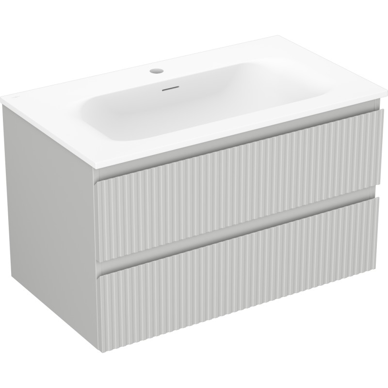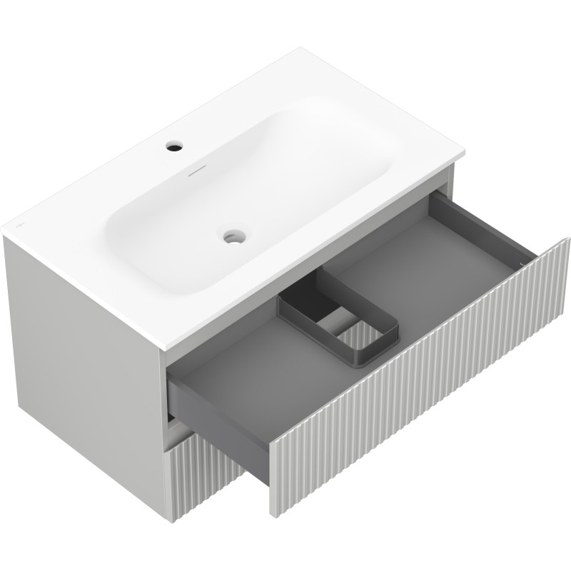 Specifikace produktu: Rozměry skříňky: Šířka: 80 cm Hloubka: 46 cm Výška: 47 cm Barva korpusu: Matně šedá Materiál korpusu: Lakovaná deska Barva čela: Matně šedá Materiál čela: Lakovaná MDF deska Struktura čela: Drážkovaná Počet zásuvek: 2 Prostorná zásuvka s funkcí tlumeného dovírání Povrch odolný vůči UV záření Rozměry umyvadla: Šířka: 81 cm Hloubka: 46,5 cm Výška: 16,5 cm Barva umyvadla: Matně bílá Materiál umyvadla: Konglomerát Otvor pro přepad: Ano Otvor pro baterii: Ano Smontovaný výrobek