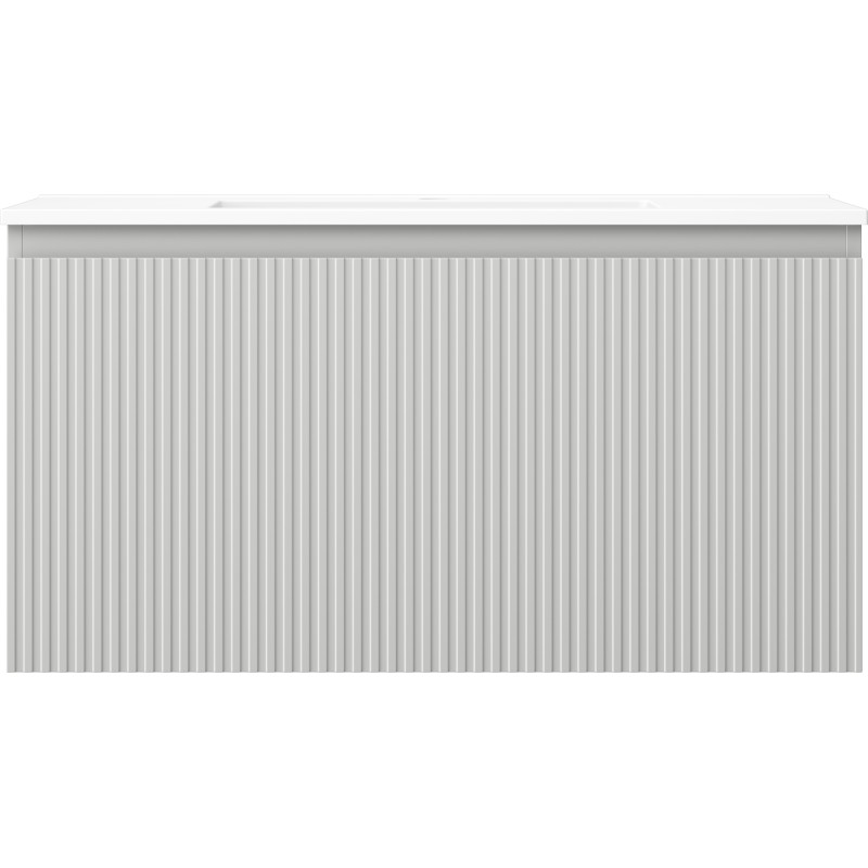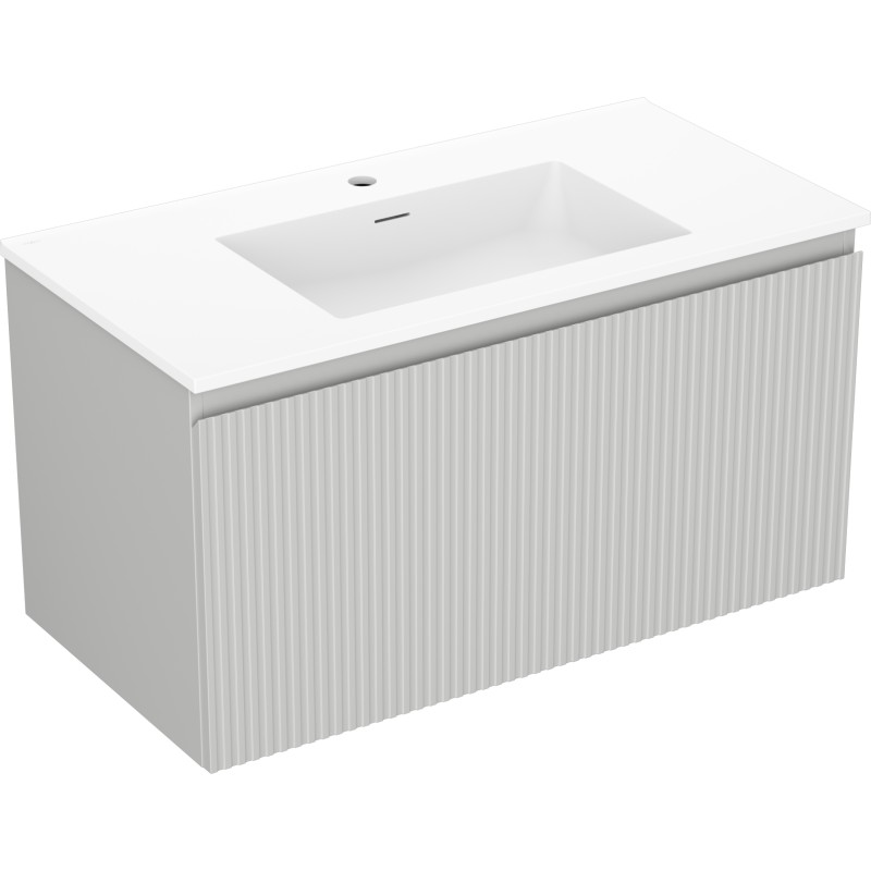 Specifikace produktu: Rozměry skříňky: Šířka: 90 cm Hloubka: 46 cm Výška: 47 cm Barva korpusu: Matně šedá Materiál korpusu: Lakovaná deska Barva čela: Matně šedá Materiál čela: Lakovaná MDF deska Struktura čela: Drážkovaná Počet zásuvek: 1 Prostorná zásuvka s funkcí tlumeného dovírání Povrch odolný vůči UV záření Rozměry umyvadla: Šířka: 91 cm Hloubka: 46,5 cm Výška: 16,5 cm Barva umyvadla: Matně bílá Materiál umyvadla: Konglomerát Otvor pro přepad: Ano Otvor pro baterii: Ano Smontovaný výrobek