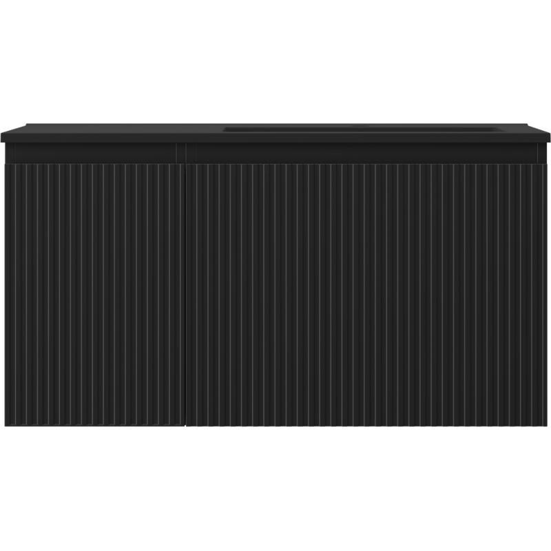 Specifikace produktu: Rozměry skříňky: Šířka: 90 cm Hloubka: 46 cm Výška: 47 cm Sada obsahuje: Zásuvková skříňka pod umyvadlo: Šířka: 60 cm Hloubka: 46 cm Výška: 47 cm Barva korpusu: Matná černá Materiál korpusu: Lakovaná deska Barva čela: Matná černá Materiál čela: Lakovaná MDF deska Konstrukce čela: Drážkovaná Počet zásuvek: 1 Prostorná zásuvka s funkcí tlumení dovírání Povrch odolný vůči UV záření Skříňka pod umyvadlo s dvířky: Šířka: 30 cm Výška: 47 cm Hloubka: 46 cm Barva korpusu: Matná černá Materiál korpusu: Lakovaná deska Barva čela: Matná černá Materiál čela: Lakovaná MDF deska Konstrukce čela: Drážkovaná Počet dvířek: 1 1 police Panty s funkcí tlumení dovírání Univerzální montáž dvířek (levé/pravé) Povrch odolný vůči UV záření Umyvadlo: Šířka: 91 cm Hloubka: 46,5 cm Výška: 16,5 cm Barva umyvadla: Matná černá Materiál umyvadla: Konglomerát Otvor pro přepad: Ano Otvor pro baterii: Ano Smontovaný produkt