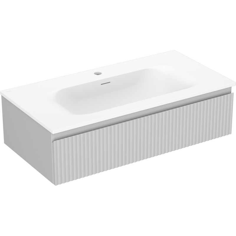 Specifikace produktu: Rozměry skříňky: Šířka: 90 cm Hloubka: 46 cm Výška: 23,5 cm Barva korpusu: Matně šedá Materiál korpusu: Lakovaná deska Barva čela: Matně šedá Materiál čela: Lakovaná MDF deska Struktura čela: Drážkovaná Počet zásuvek: 1 Prostorná zásuvka s funkcí tichého dovírání Povrch odolný vůči UV záření Rozměry umyvadla: Šířka: 91 cm Hloubka: 46,5 cm Výška: 16,5 cm Barva umyvadla: Matně bílá Materiál umyvadla: Konglomerát Otvor pro přepad: Ano Otvor pro baterii: Ano Smontovaný výrobek