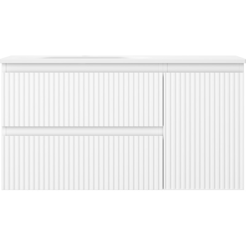 Specifikace produktu: Rozměry skříňky: Šířka: 90 cm Hloubka: 46 cm Výška: 47 cm Sada obsahuje: Zásuvková skříňka pod umyvadlo: Šířka: 60 cm Hloubka: 46 cm Výška: 47 cm Barva korpusu: Matná bílá Materiál korpusu: Lakovaná deska Barva čela: Matná bílá Materiál čela: Lakovaná MDF deska Konstrukce čela: Drážkovaná Počet zásuvek: 2 Prostorná zásuvka s funkcí tlumení dovírání Povrch odolný proti UV záření Skříňka pod umyvadlo s dvířky: Šířka: 30 cm Výška: 47 cm Hloubka: 46 cm Barva korpusu: Matná bílá Materiál korpusu: Lakovaná deska Barva čela: Matná bílá Materiál čela: Lakovaná MDF deska Konstrukce čela: Drážkovaná Počet dvířek: 1 1 police Panty s funkcí tlumení dovírání Univerzální montáž dvířek (levé/pravé) Povrch odolný proti UV záření Umyvadlo: Šířka: 91 cm Hloubka: 46,5 cm Výška: 16,5 cm Barva umyvadla: Matná bílá Materiál umyvadla: Konglomerát Otvor pro přepad: Ano Otvor pro baterii: Ano Výrobek smontovaný