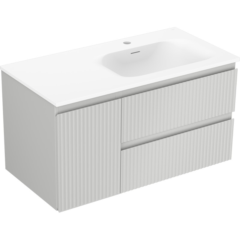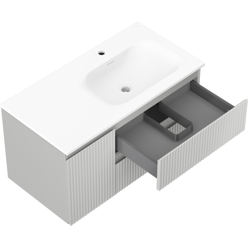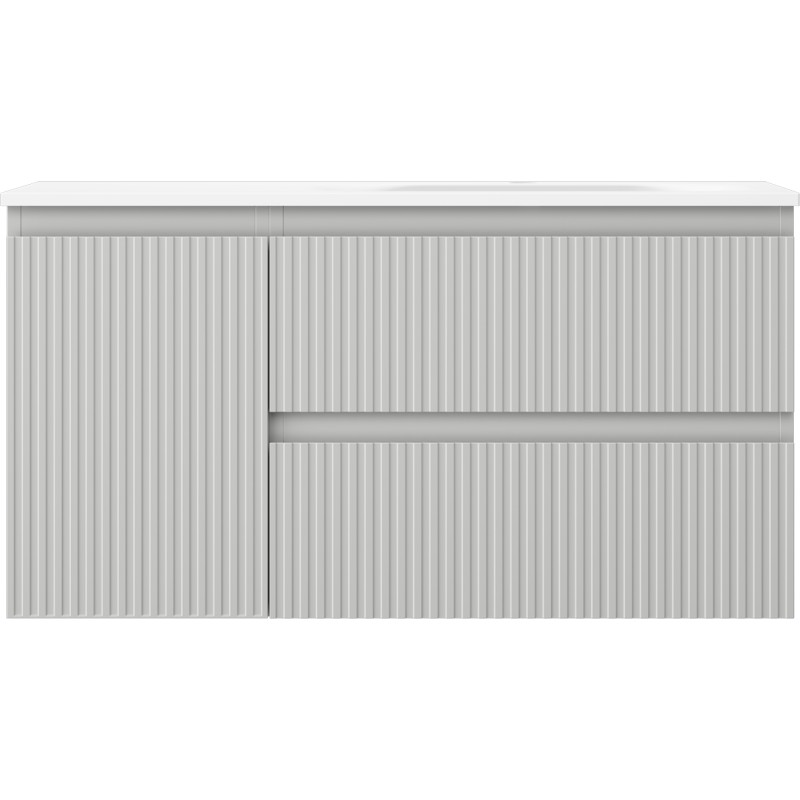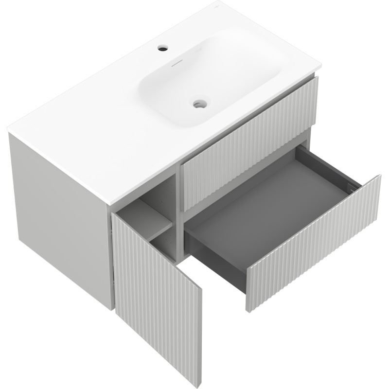 Specifikace produktu: Rozměry skříňky: Šířka: 90 cm Hloubka: 46 cm Výška: 47 cm Sada obsahuje: Zásuvková skříňka pod umyvadlo: Šířka: 60 cm Hloubka: 46 cm Výška: 47 cm Barva korpusu: Matně šedá Materiál korpusu: Lakovaná deska Barva čela: Matně šedá Materiál čela: Lakovaná MDF deska Konstrukce čela: Drážkovaná Počet zásuvek: 2 Prostorná zásuvka s funkcí tlumení dovírání Povrch odolný proti UV záření Skříňka pod umyvadlo s dvířky: Šířka: 30 cm Výška: 47 cm Hloubka: 46 cm Barva korpusu: Matně šedá Materiál korpusu: Lakovaná deska Barva čela: Matně šedá Materiál čela: Lakovaná MDF deska Konstrukce čela: Drážkovaná Počet dvířek: 1 1 police Panty s funkcí tlumení dovírání Univerzální montáž dvířek (levé/pravé) Povrch odolný proti UV záření Umyvadlo: Šířka: 91 cm Hloubka: 46,5 cm Výška: 16,5 cm Barva umyvadla: Matně bílá Materiál umyvadla: Konglomerát Otvor pro přepad: Ano Otvor pro baterii: Ano Produkt smontovaný