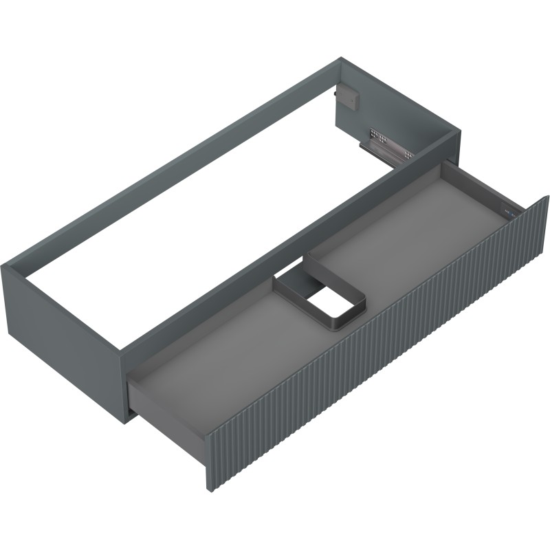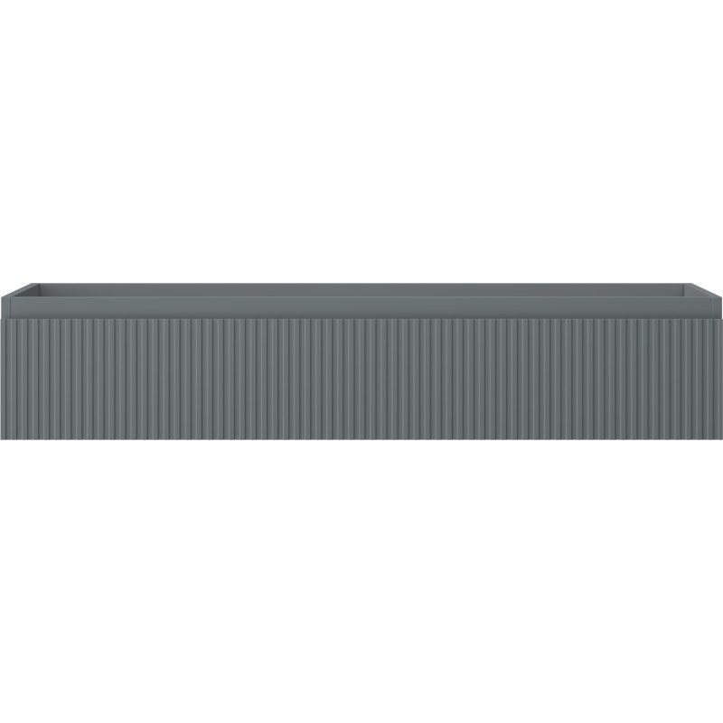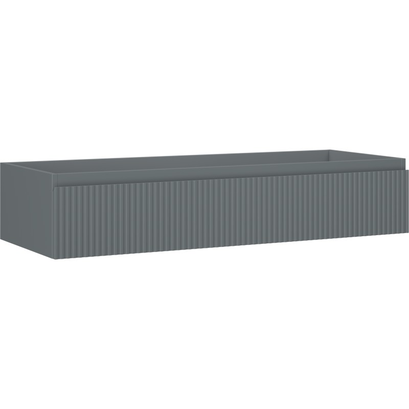 Specifikace produktu: Šířka: 120 cm Výška: 23,5 cm Hloubka: 46 cm Barva korpusu: Matný grafit Materiál korpusu: Lakovaná deska Barva čela: Matný grafit Materiál čela: Lakovaná MDF deska Struktura čela: Drážkovaná Počet zásuvek: 1 Prostorná zásuvka s funkcí tlumeného dovírání Plný výsuv pro snadný přístup k obsahu zásuvky Povrch odolný vůči UV záření Kombinovatelný s pracovní deskou nebo umyvadlem Otis, Vela Smontovaný produkt